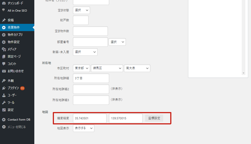 物件住所に間違いや不足があった場合は正しい住所を入力します。
