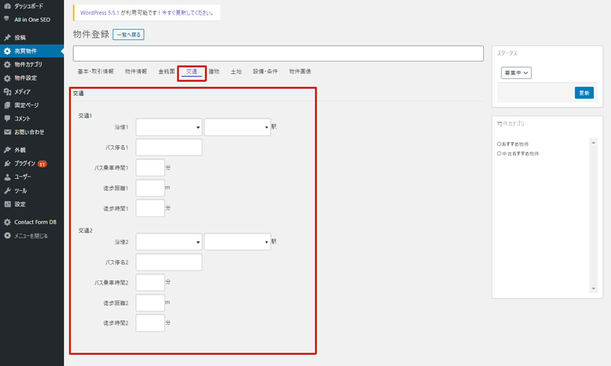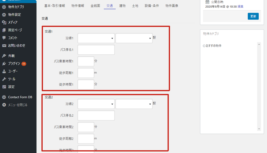 交通機関が1種以上ある場合は、交通2にも入力します。