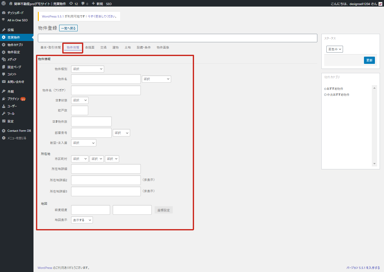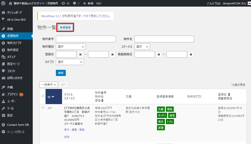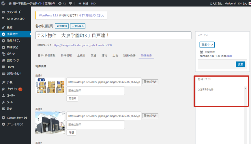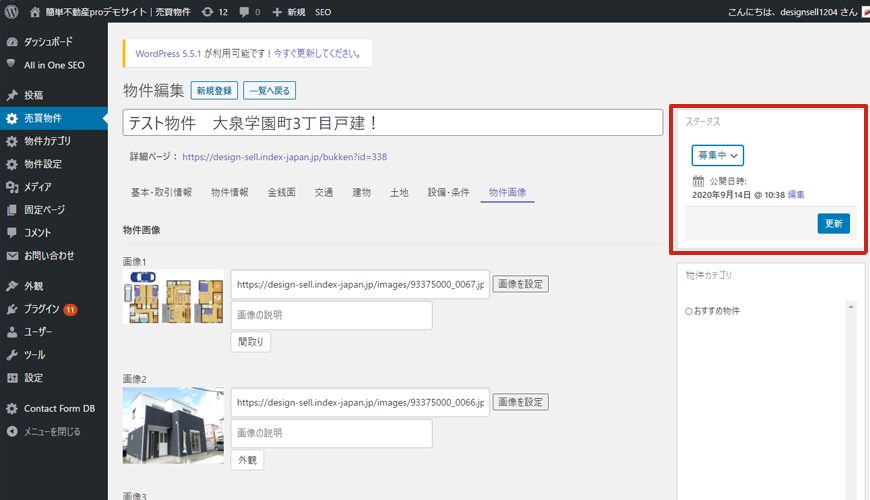 入力が終わったら、「更新」をクリックして物件登録を完了します。