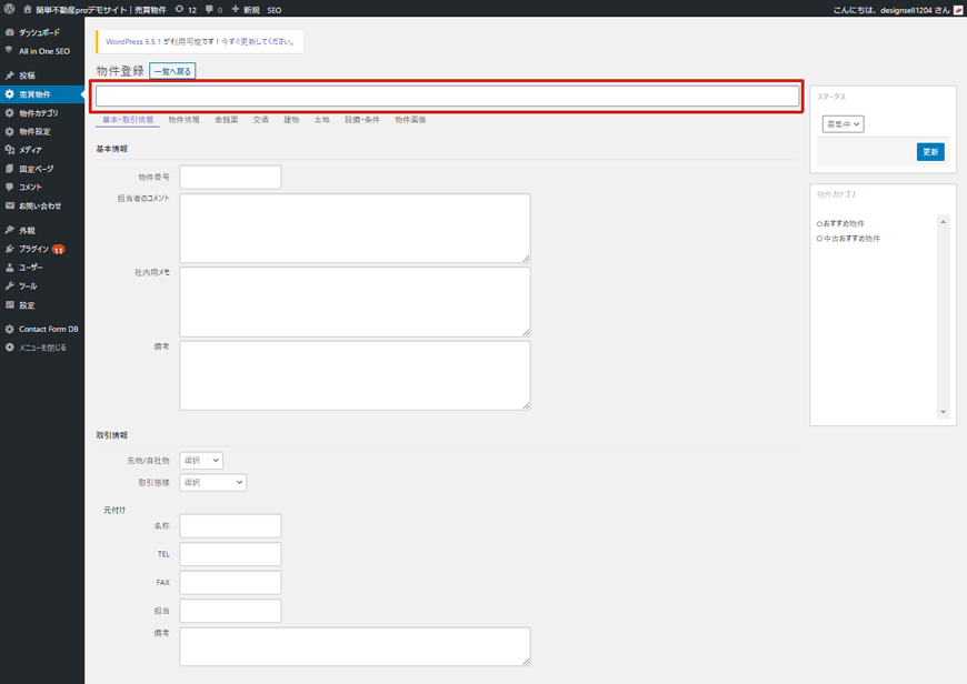 最初に物件タイトルを入力します。物件タイトルは必須です。