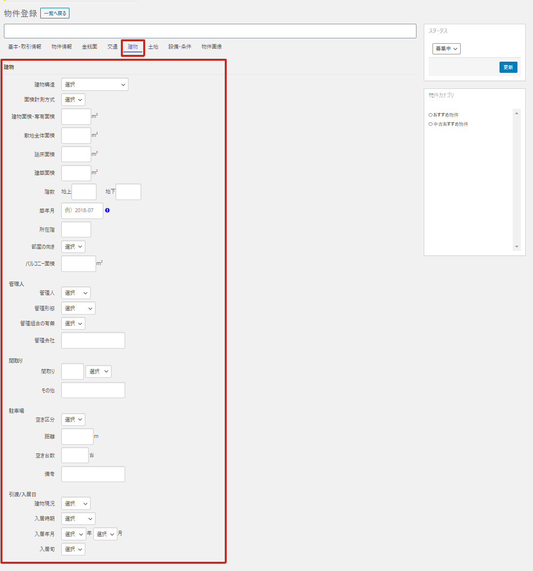 物件登録では、サイトで表示される物件の登録方法を紹介します。