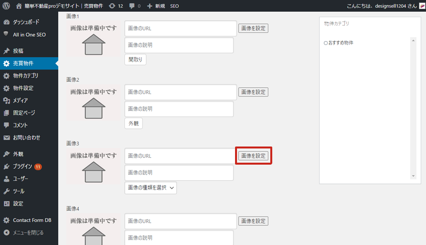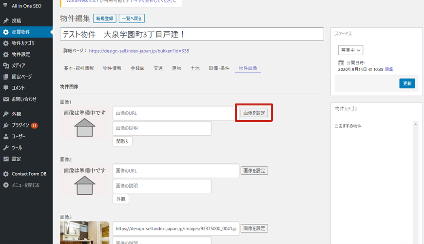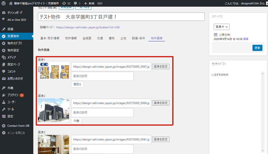 但し、1枚目は「間取り図」、2枚目は物件の「外観画像」を設定します。