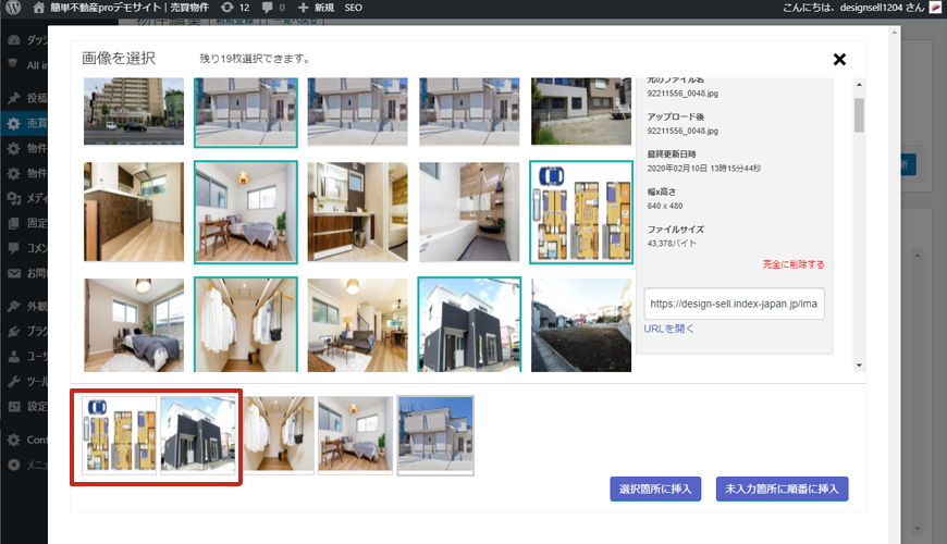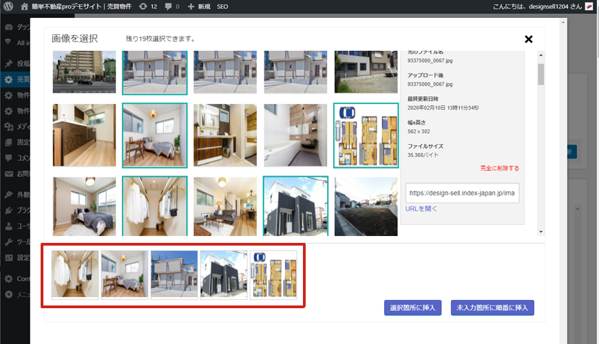 画像が未設定だった部分に選択した画像全てが設定され、順番も並べた順に入力されています。