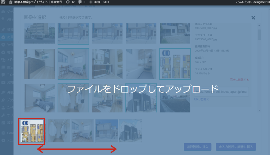 画像1は「間取り図」、画像2は「外観」なので、画像をドラッグして、間取りを1番目、外観を2番目に並べ変えます。