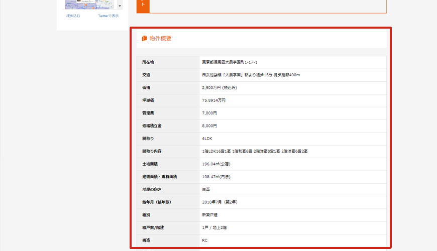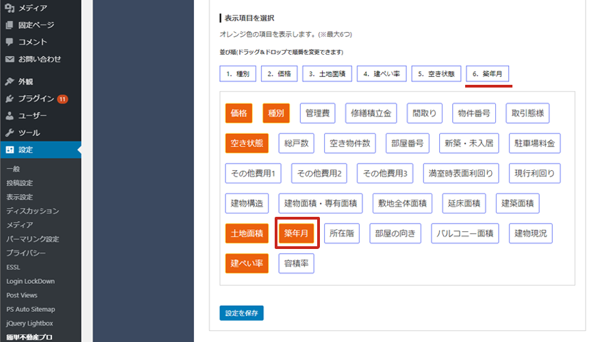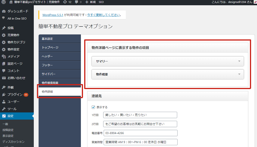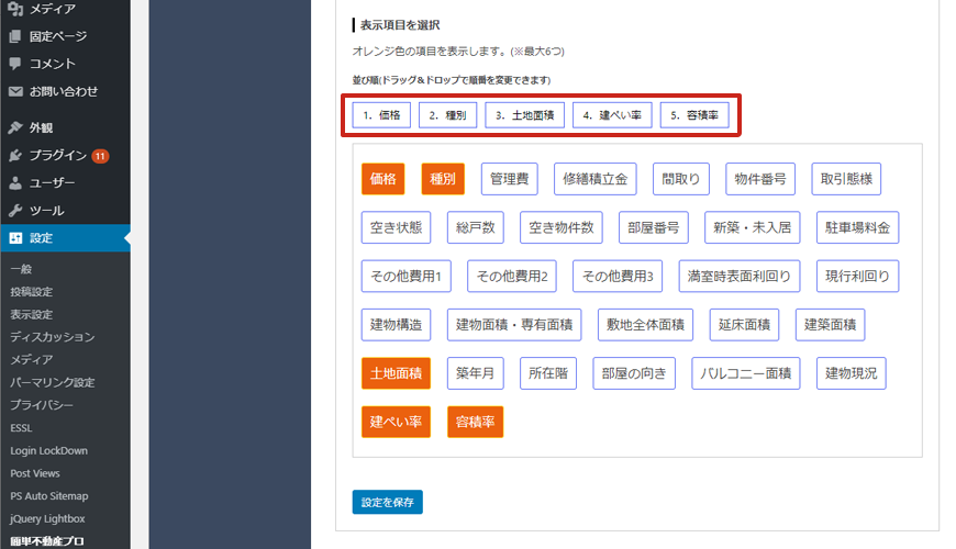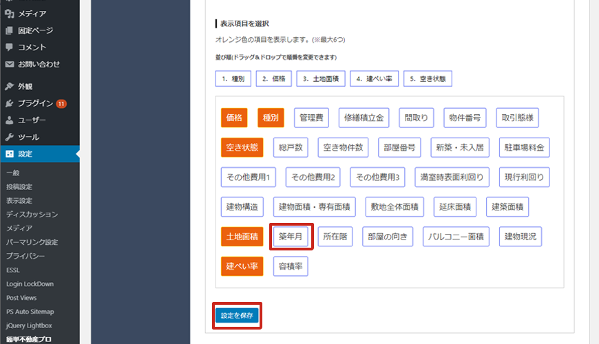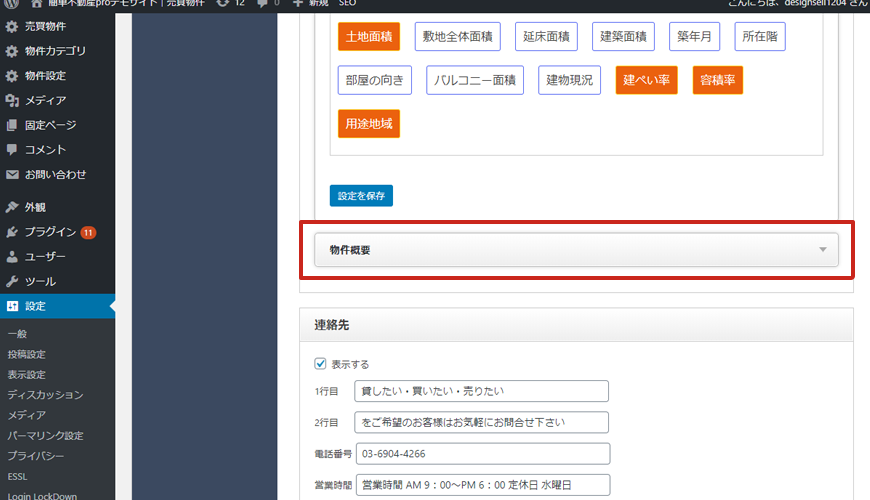 「物件詳細ページに表示する物件の項目」でサマリーと物件概要を設定します。