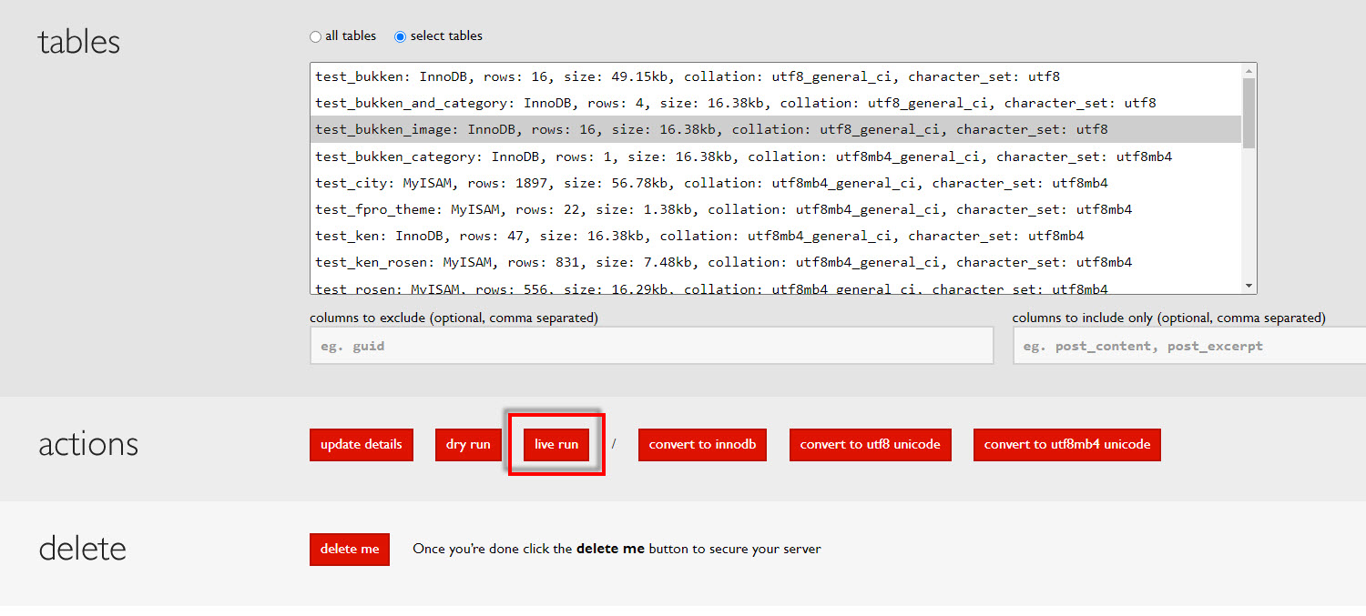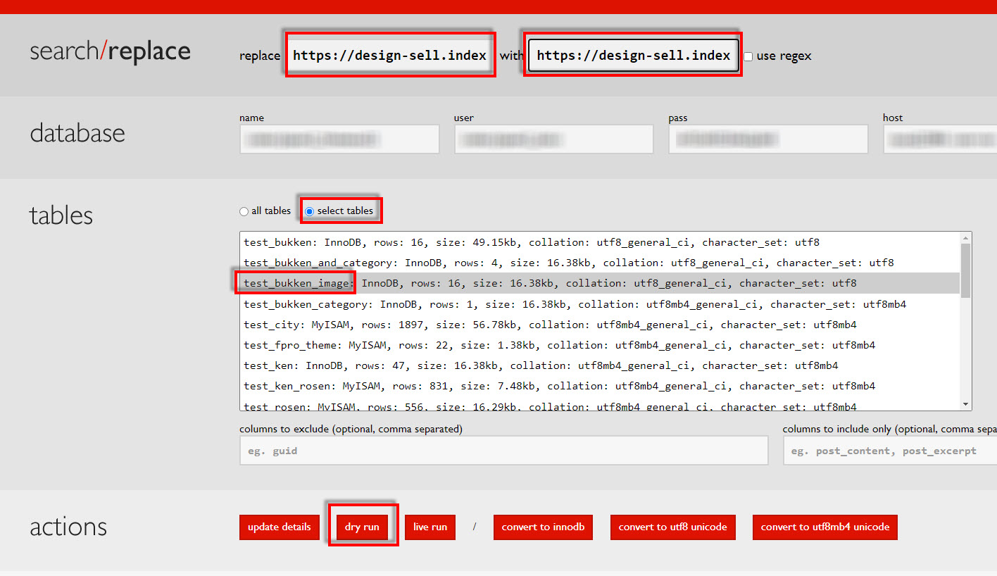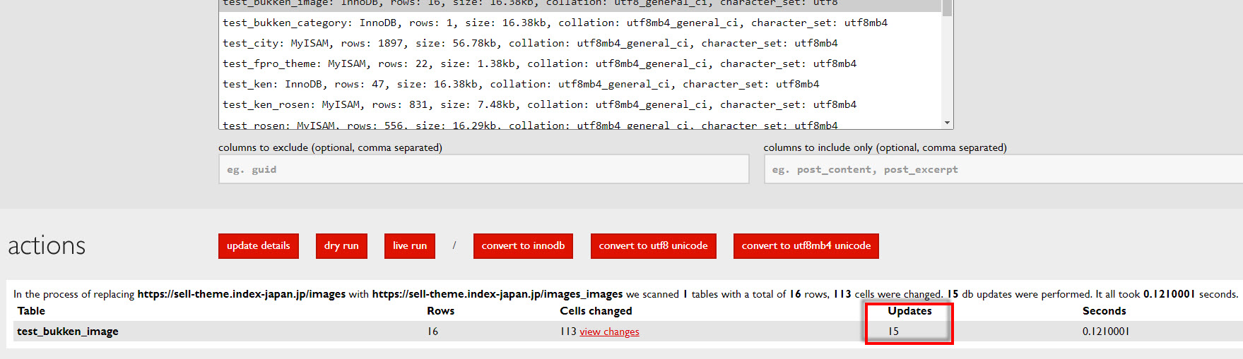 例:テーブルプレィックスがwp_の場合はwp_bukken_imageを選択