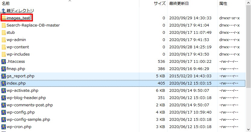 上の図はFFFTPなどのFTPソフトを使ってimages_testディレクトリを作成した様子です。