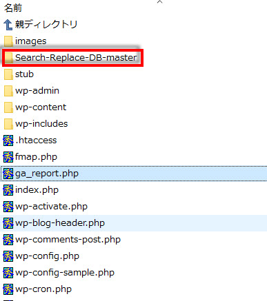 続いてデータベースのテーブル内のURLを置換します。置換にはDatabase Search and Replace Script in PHPを利用します。リンク先からダウンロードしたフォルダをwp-config.phpのあるディレクトリにFFFTPなどのFTPソフトでアップロードします。