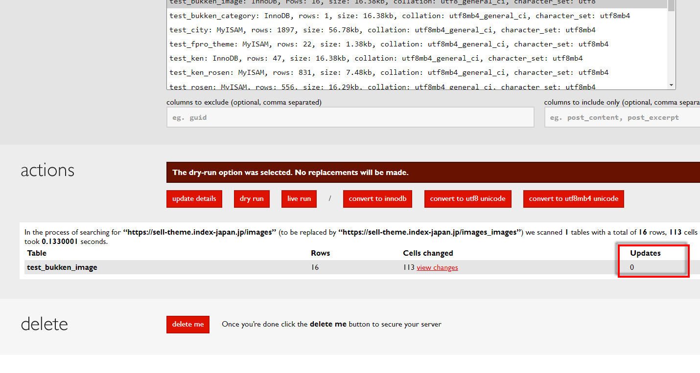 URLの置換作業が終わったらリスク防止の為Search-Replace-DB-masterはサーバー上から削除しましょう。