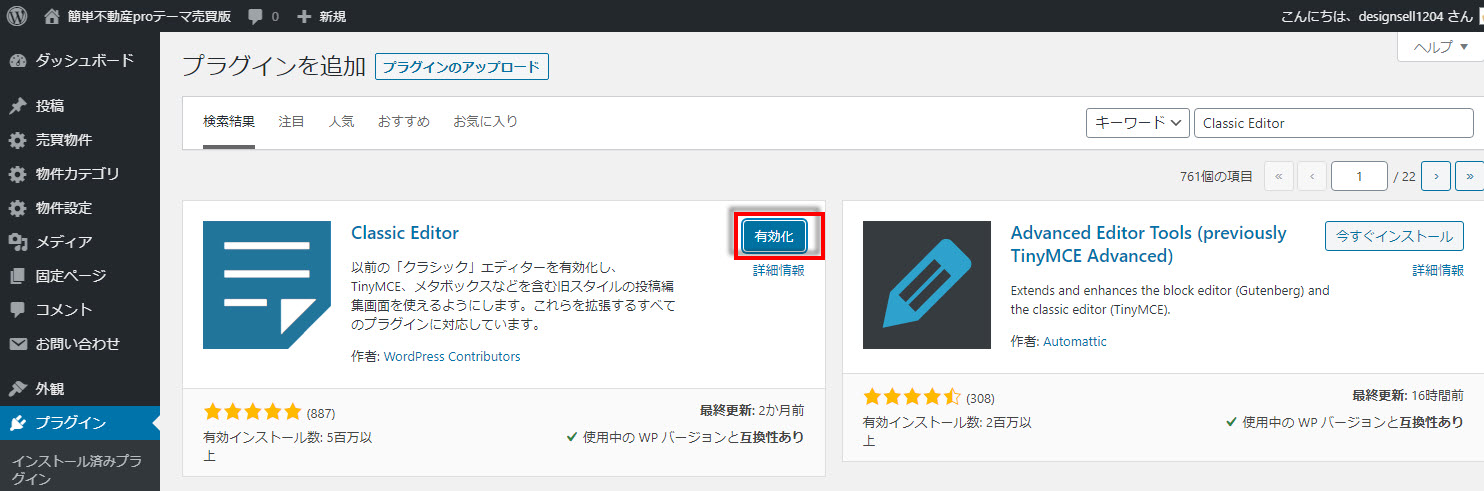検索結果にClassic Editorと表示されるので「今すぐインストール」をクリックします。