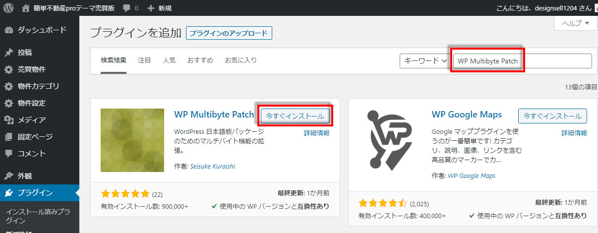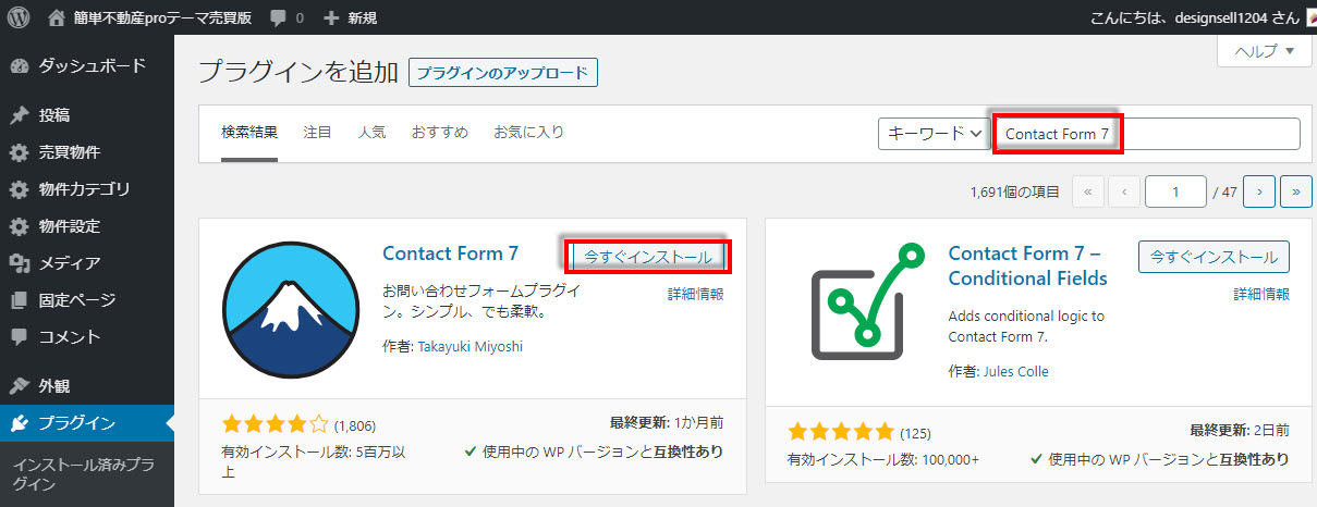 同様にWP Multibyte PatchとContact Form 7をインストールします。
