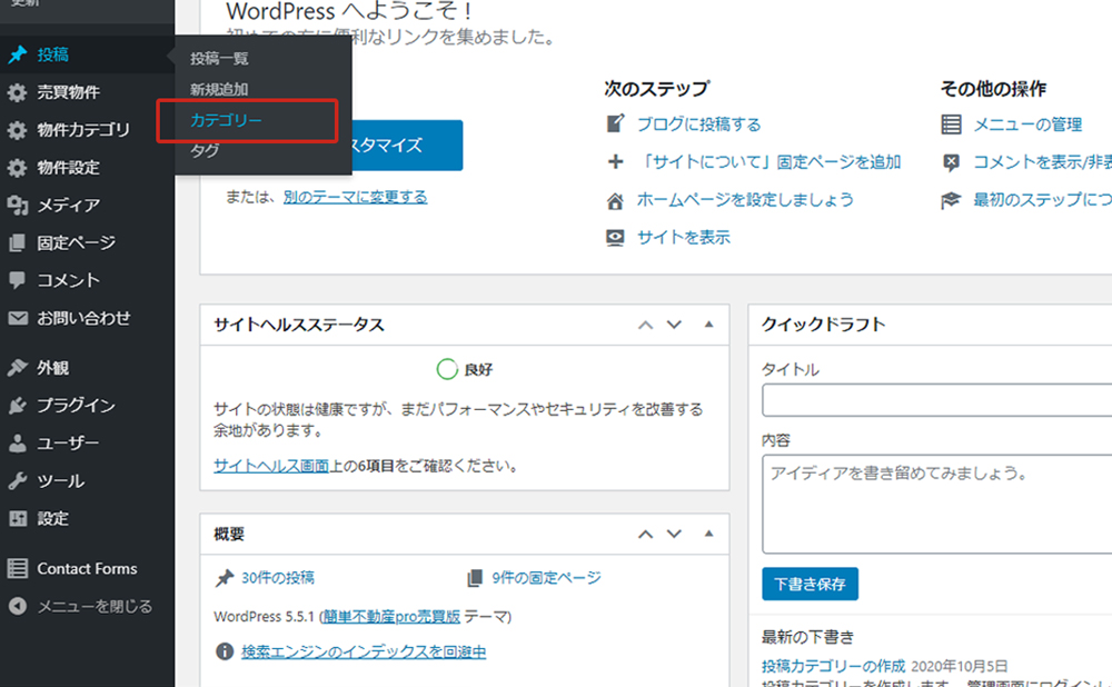 カテゴリーに「お知らせ」も追加され、必要な投稿カテゴリーが設定できました。