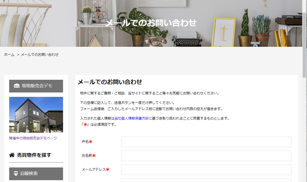 簡単不動産proのフォームはContact Form 7 のようなプラグインを使用することを想定していますが、基本的なフォームのデザインも組み込まれているのでサンプルを紹介します。 お問い合わせフォ...
