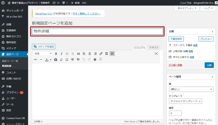 初期設定で以下の固定ページを新規作成します。 ・物件検索結果ページ ・物件詳細ページ ・お気に入りページ ・ブログ一覧ページ 管理画面にログインします。 ...